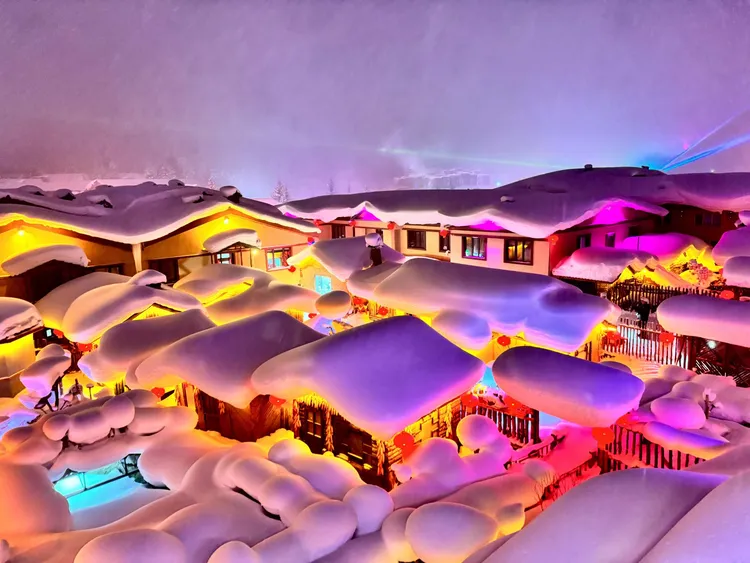 此刻,时间仿佛被按下了暂停键,房屋和树木都成了雕塑。