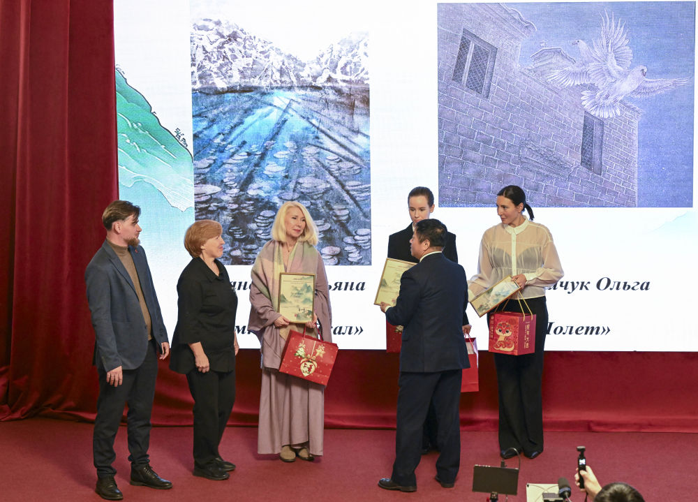 本届大赛设工笔、山水、写意三大门类,共收到来自俄罗斯各地的原创中国画作品202幅。这些作品题材多元,技法精湛,生动展现了俄罗斯国画爱好者对中国艺术精神的领悟与真挚情感。赛事特邀中国美术学院权威专家组成评审委员会,经过多轮严格评议,每个门类评选出一等奖1名,二等奖2名,三等奖3名。 11月25日活动颁奖典礼现场。新华社记者 郝建伟 摄