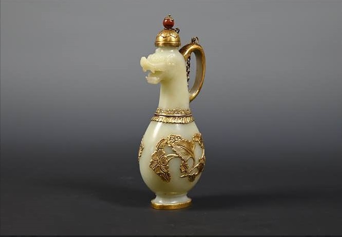 白玉包金花卉纹饰兽首壶