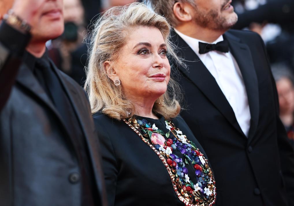 5月21日,在法国南部小城戛纳举行的第77届戛纳国际电影节上,影片《我的马赛洛》主演凯瑟琳·德纳芙踏上影片的首映式红毯。新华社记者 高静 摄