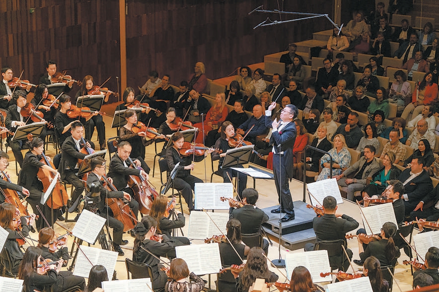 李心草执棒国家大剧院管弦乐团,登台莫斯科扎里亚季耶音乐厅。牛小北摄
